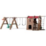 Ahora tendrá horas y horas de entretención con este gigante del juego. El conjunto de columpio Adventure Lodge con balancín está diseñado para entregar variedad, estabilidad y diversión por muchos años.